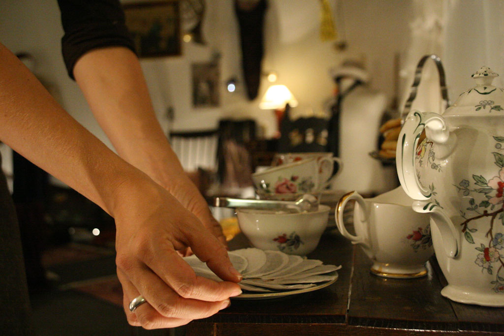 Treasured has been commissioned by mac as part of the Encounters season, and see patrons ascend at staggered intervals to the Foyle Gallery which has been fitted out in an amalgam of a Dickensian curiosity shop and an elderly relative’s sitting-room. Having been encouraged to look around the bric-a-brac and objets d’art, an attendant is on hand to serve tea in china cups, complete with lump sugar and viennese whirls. All aspects of design, from the discreet footlights to the soundtrack of operetta and saxophone jazz, create a genuinely relaxing, enveloping atmosphere, which is only disrupted by the noise of patrons chatting and bustling around the Box Office unfortunately situated below.